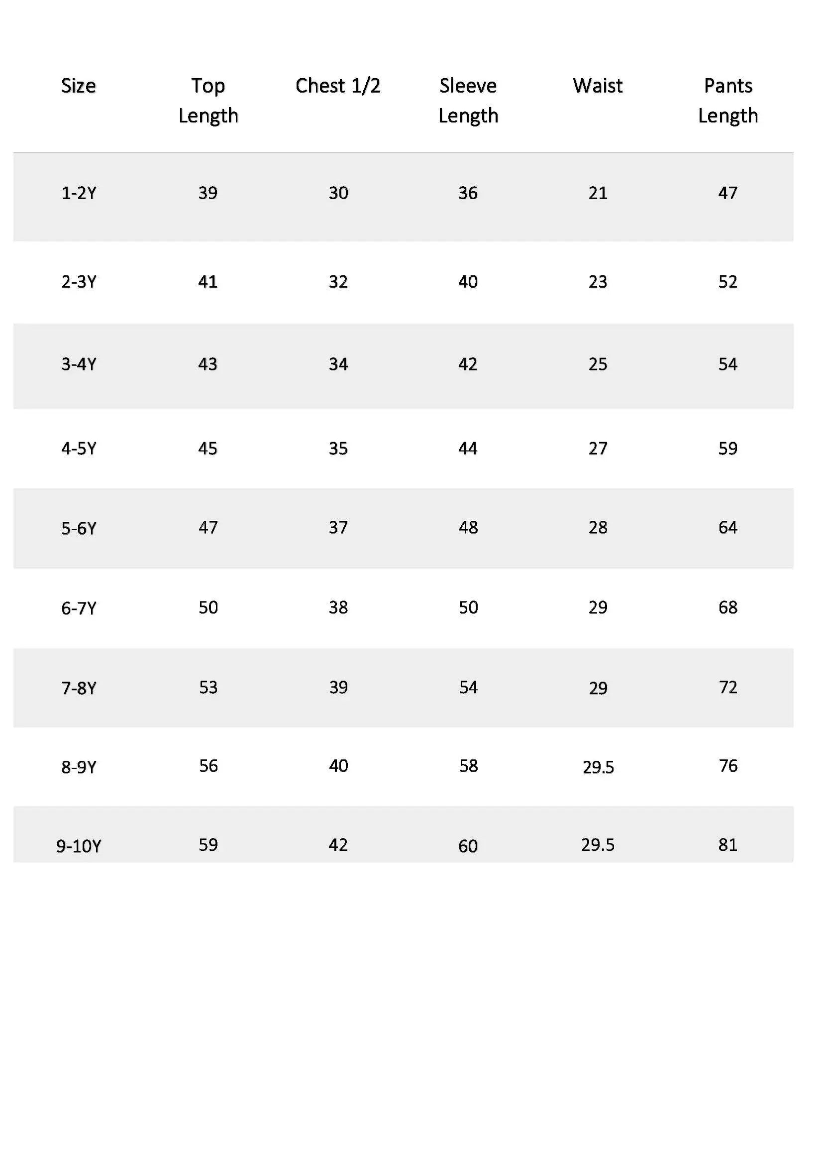 size chart added for kids.